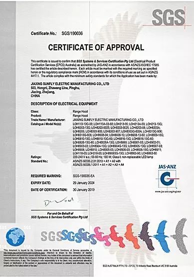 All of our kitchen appliances are manufactured in accordance with international standards.Certification:Our side hoods, island hoods, slim hoods, telescopic hoods, wall-mounted hoods, and other kitchen appliances have received CE,RoHS,GS,SASO,INMETRO,SAA,CCC certificates and so on.